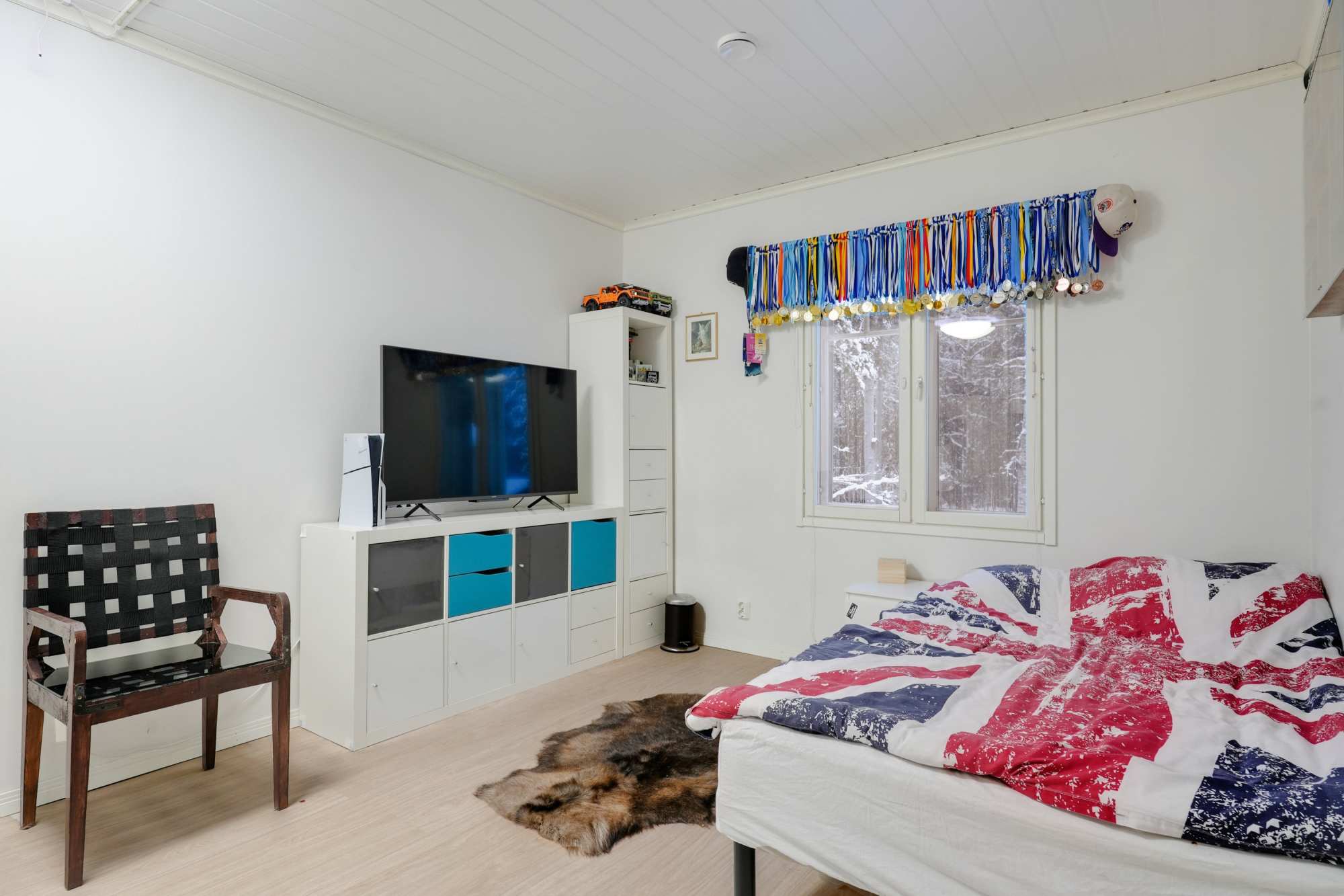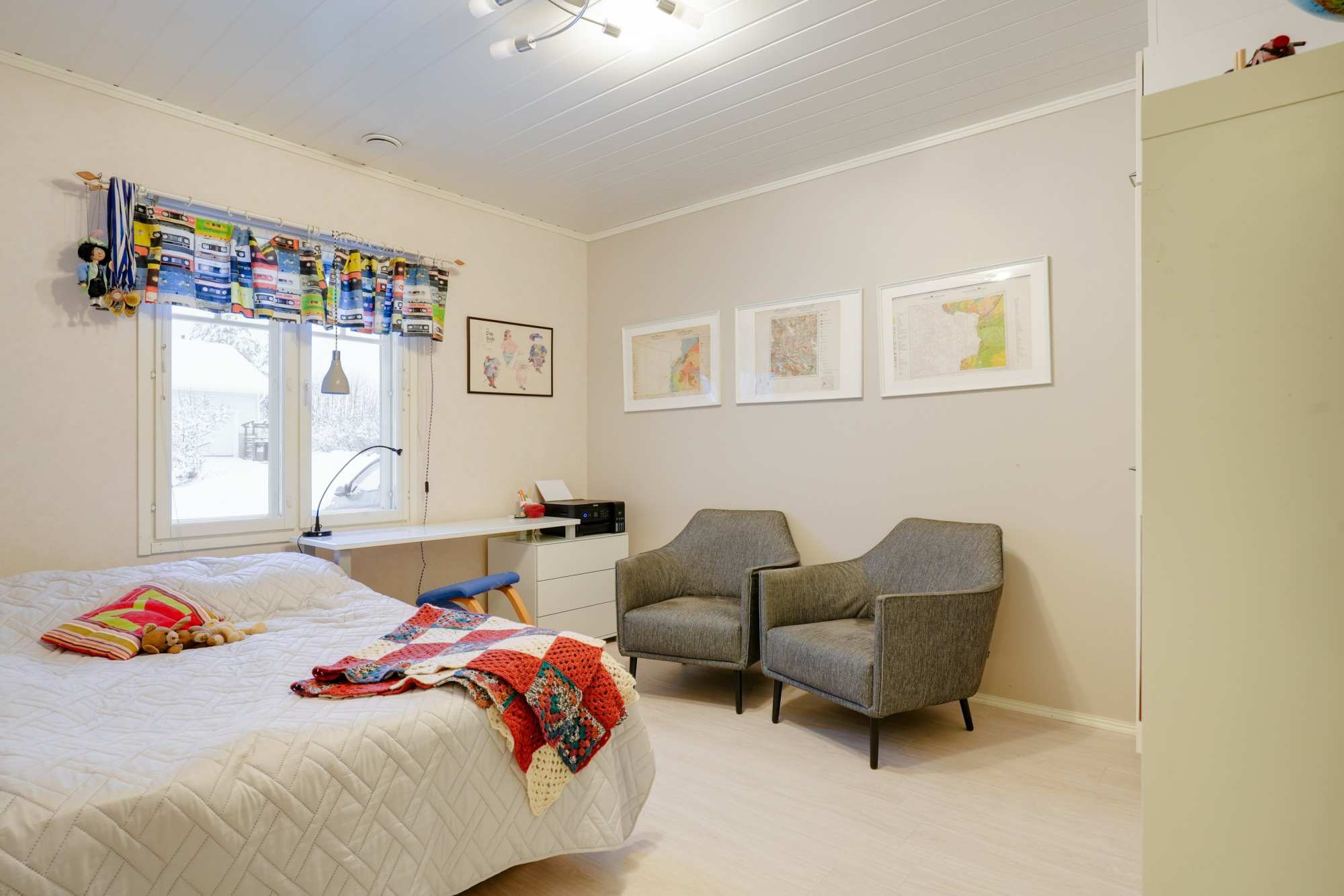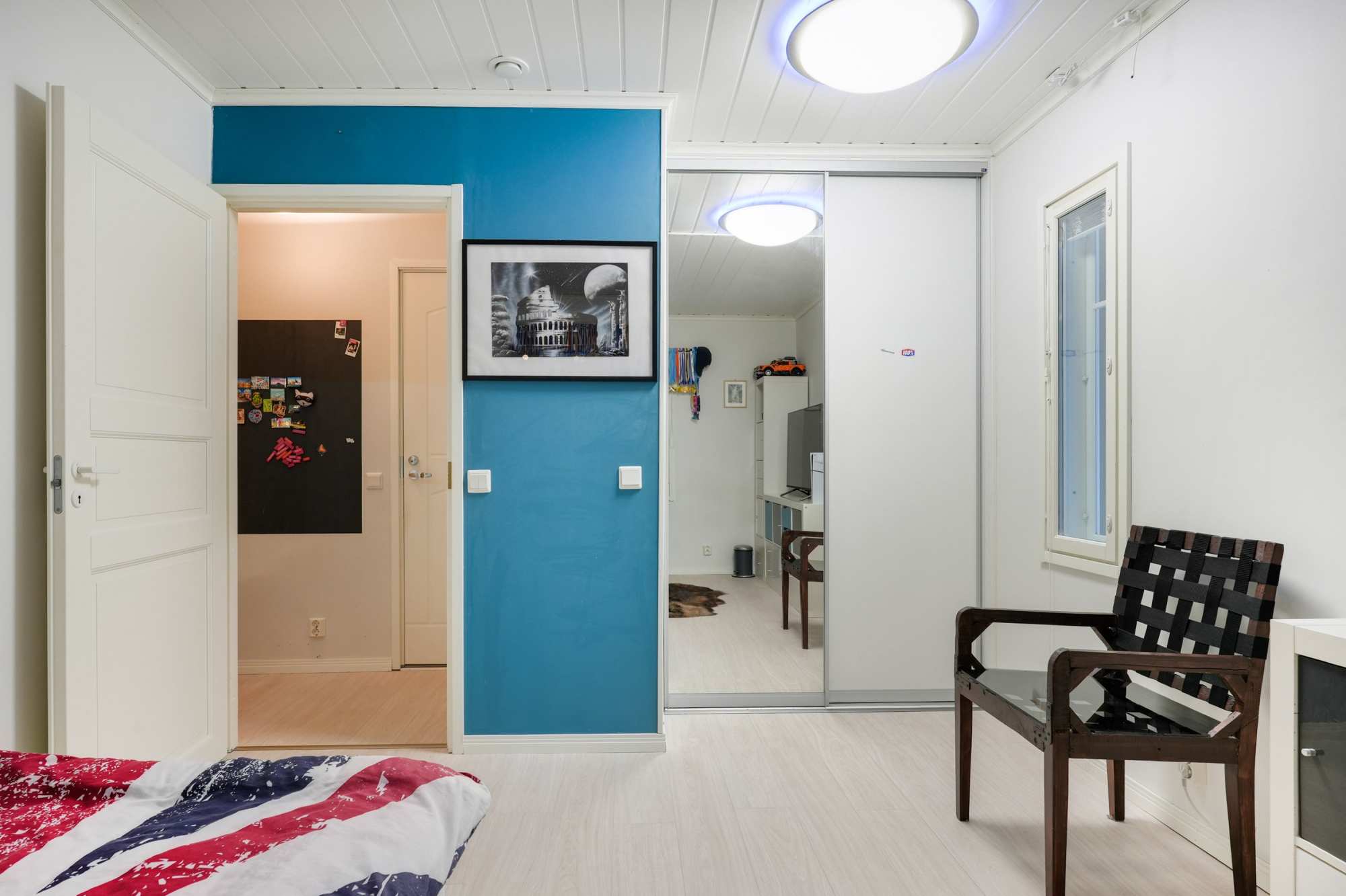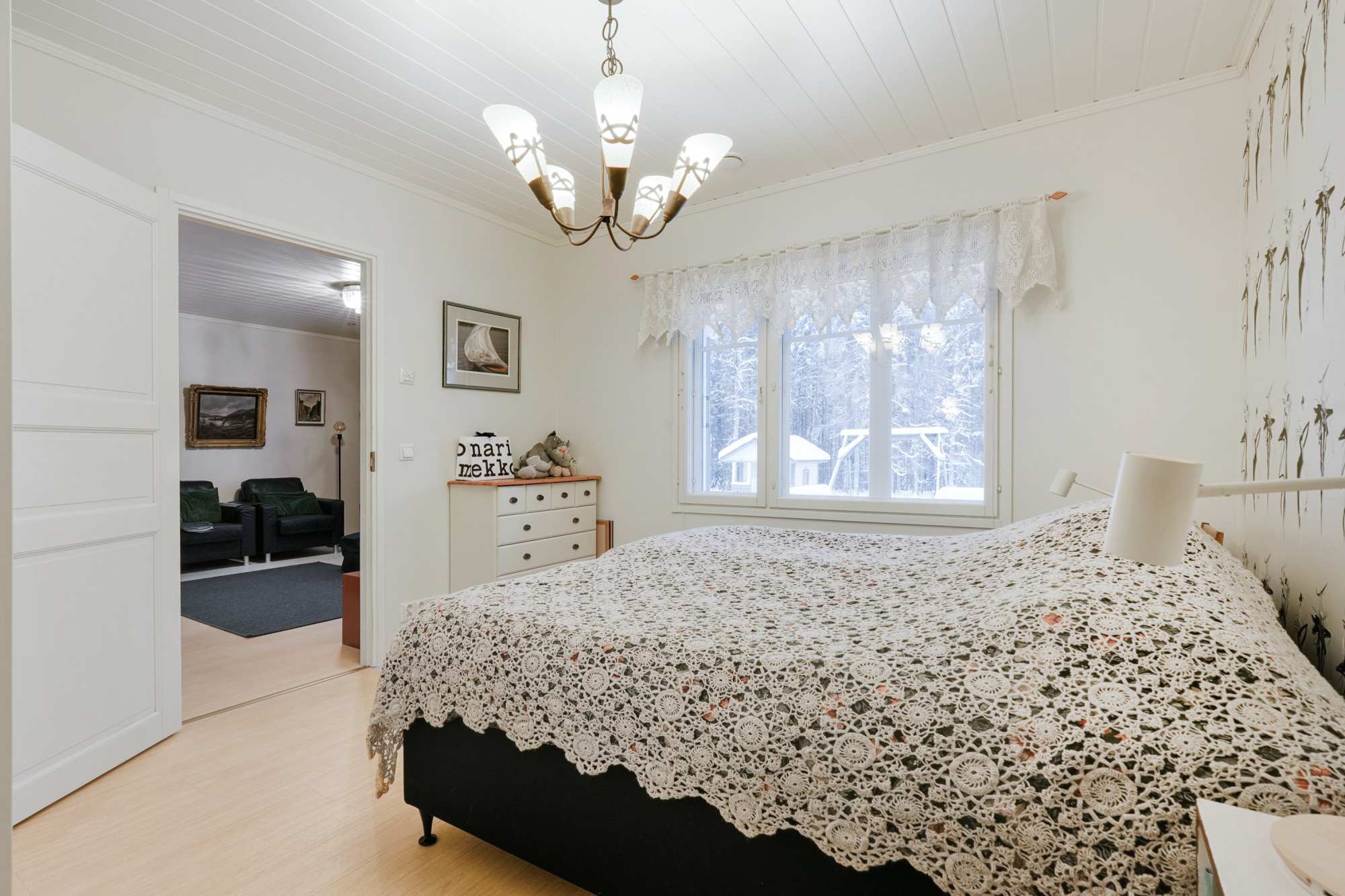 | Makuuhuoneen materiaalit | Lattia: Vinyyli Seinät: Maali |