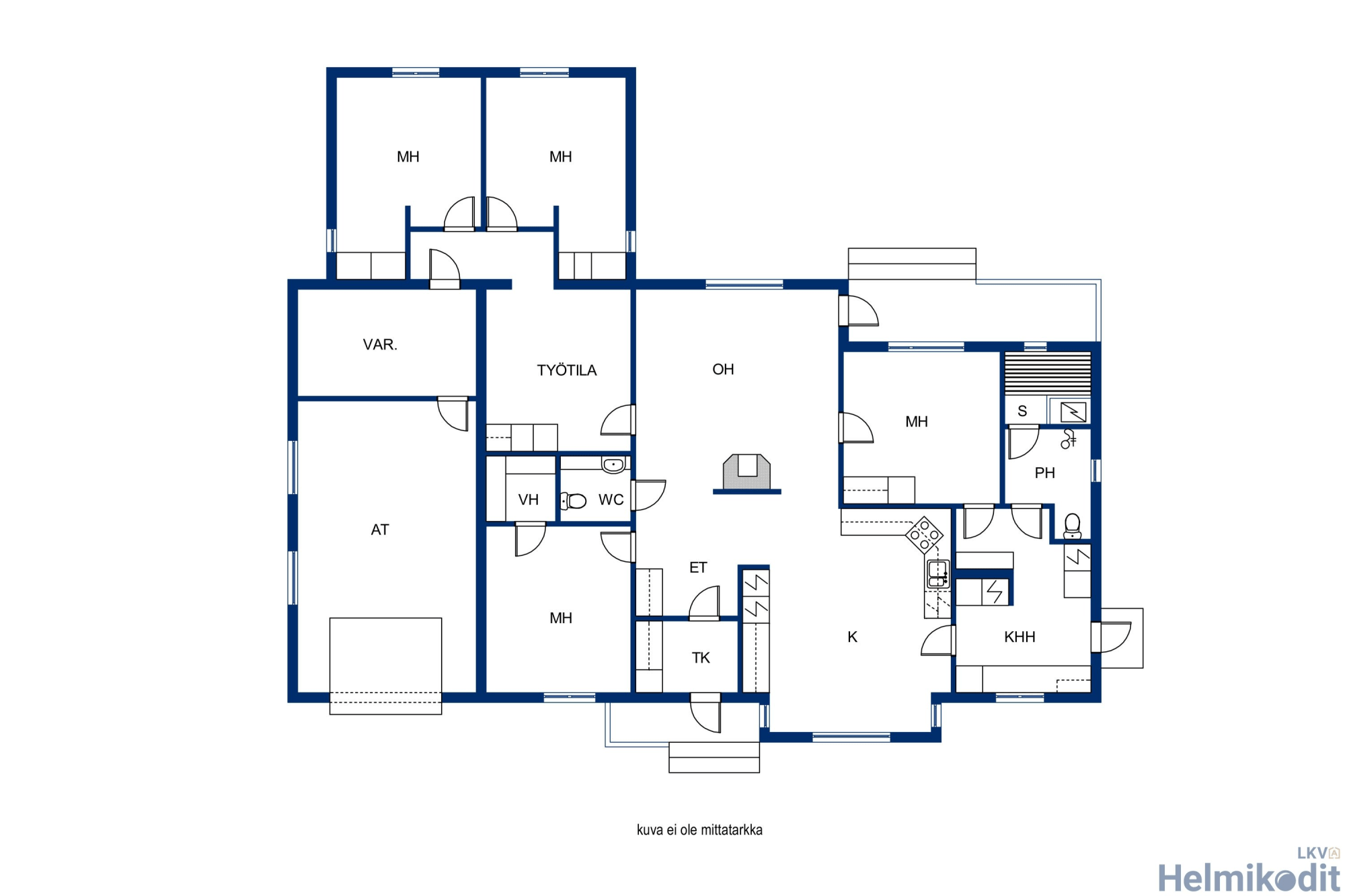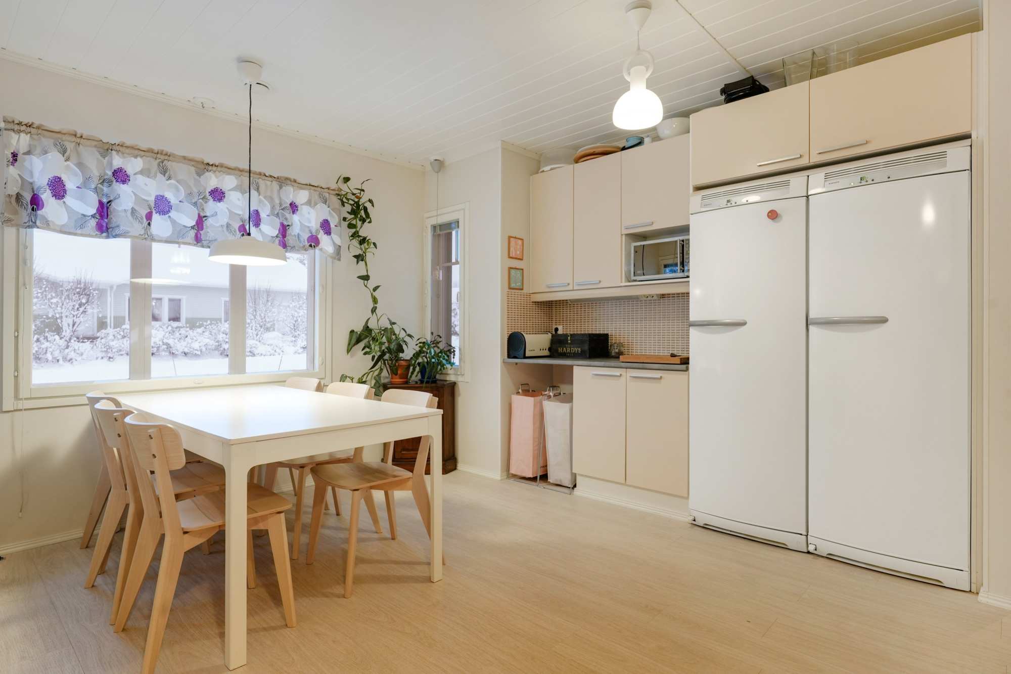 | Keittiön varusteet | Jääkaappi, erillinen pakastin, erillisuuni, liesi, liesituuletin ja astianpesukone |