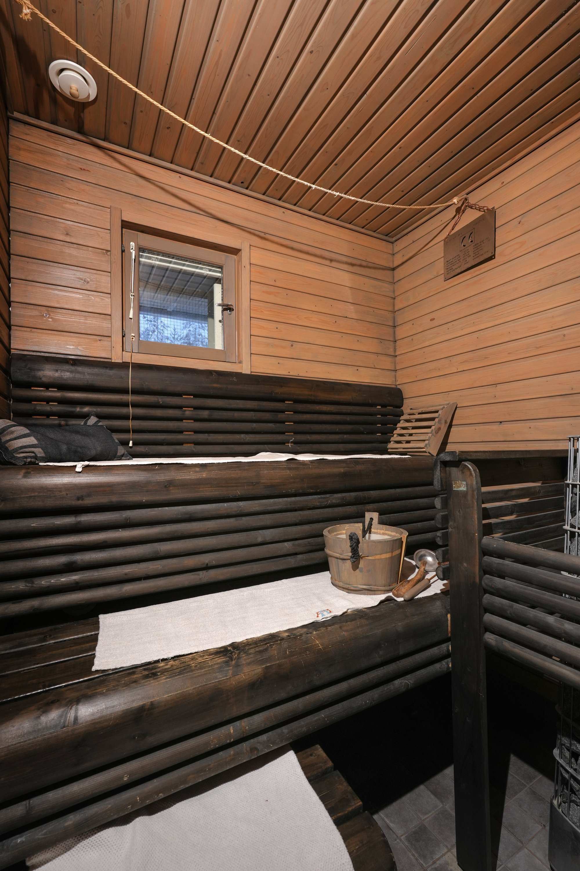 | Tehdyt korjaukset ja remontit | -puhallusvillaa lisätty yläpohjaa -seinien maalaus ja lattian vaihto vinyyliin noin 4-5 vuotta sitten -autotallin ovi uusittu -ulkomaalaus alkuperinen osa noin 7 vuotta sitten ja laajennus noin 5 vuotta sitten -Ilmalämpöpumppu 2022 -IV kone ja lämminvesivaraaja uusittu -erillisen wc:n lattia maalattu sekä allas, taso ja hana uusittu -lauteet käsiteltu useampi vuosi sitten -keittiön tasojen uusiminen ja kodinkoneiden vaihto (erillisuuni, liesitaso, tiskikone) 2022 -lattialämmitys termostaatit uusittu erissä, viimeisimmät 2022 -IV koneen nuohous 2022 (suodattimia vaihdettu säännöllisesti) -aurinkopaneelit 10 kpl 2023 (Aurinkopaneeleiden invertteri mahdollistaa lisä paneeleiden asennuks.) -Kph silikonit uusittu ja osa saumoista 2024 |